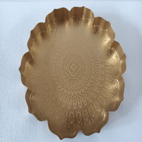 Beautiful 12-inch pooja thal featuring intricate etching design work