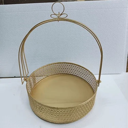 Spacious 15-inch hamper basket crafted from sturdy iron metal with a luxurious golden finish